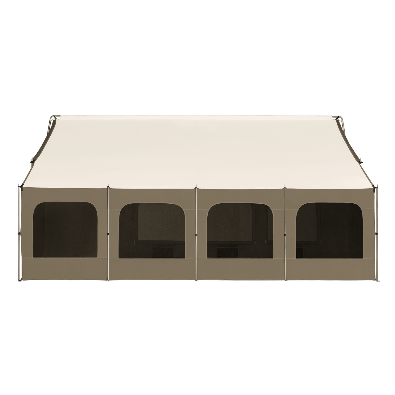 - Optional awning 8 x 8 ft. with steel frame (sold separately) can be attached at both ends of this tent
