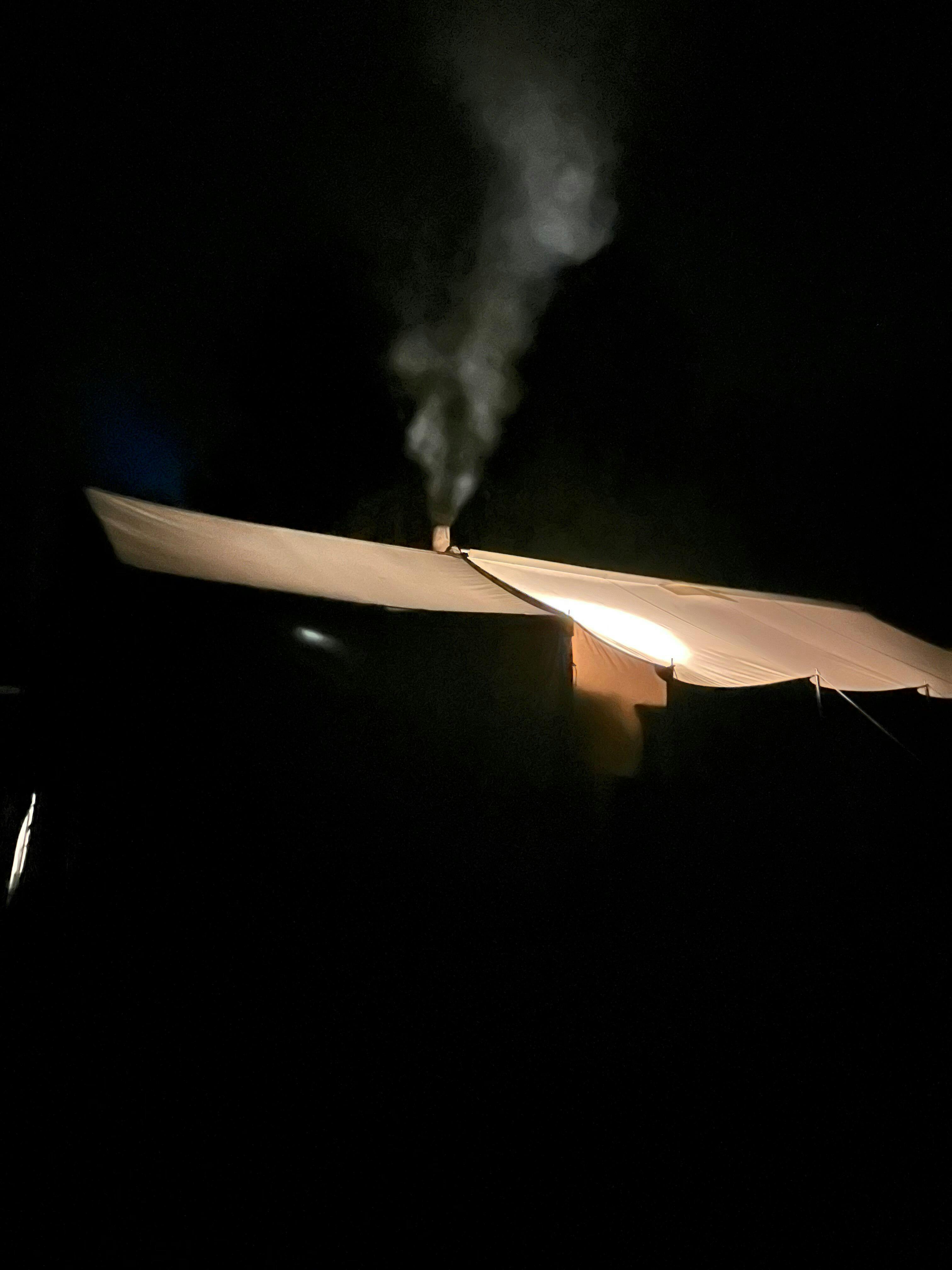 12x16 Cabin Lodge Bundle includes tent, stove, awning enclosure accessory, stove mat and tarp.