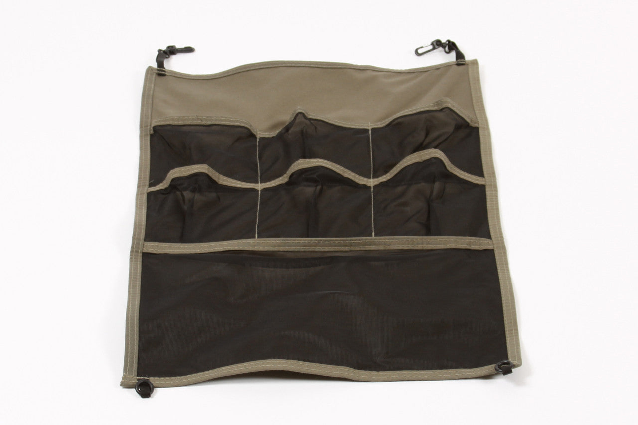 Pocket Organizer. Great place to put keys, maps, wallet, sunglasses, or other small items you want to keep of the floor. Clips on your tents tie rings, or to the bottom of another organizer. Tip: If you want it to adjust the height make some longer ties with parachute cord.