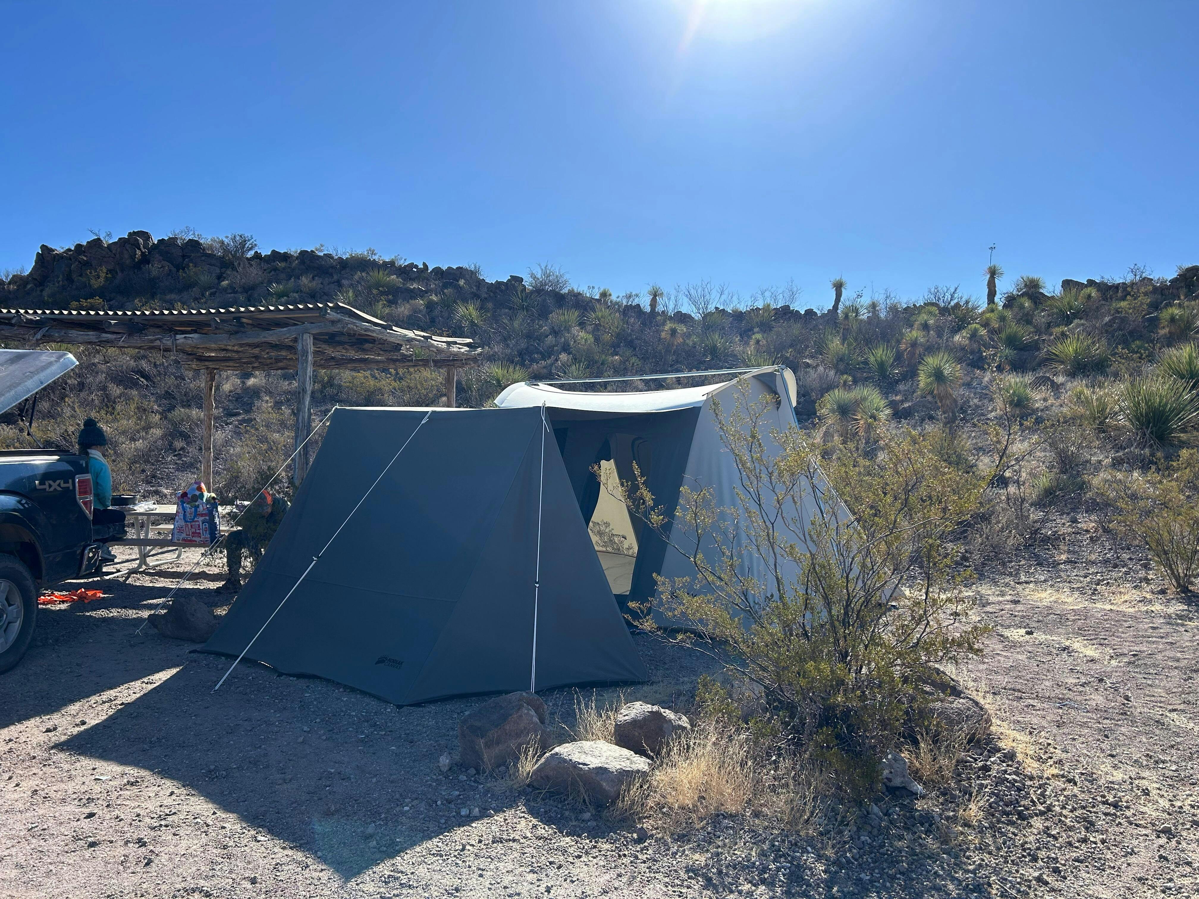 I had wanted a canvas tent for quite sometime and finally decided to pull the trigger on the 10x14 flex bow deluxe tent. Boy was it a great decision! Shipping was fast. It took me about 30 minutes to set up in the backyard by myself to wet it down per the instructions. When we took it to Big Bend the following week, my kids and I had it set up in 15 minutes. It easily sleeps our family of 6 plus gear and a buddy heater for the 30 degree mornings. The floor seems almost bullet proof. Very impressive. We also bought the canvas floor liner which added some insulation as well as more comfort for bare feet. It didn’t get too windy but we got some gusts into the high teens and the tent was rock solid throughout the night. Tent stakes and stake loops on the tent are well done too. Looking forward to many more family memories in this tent!