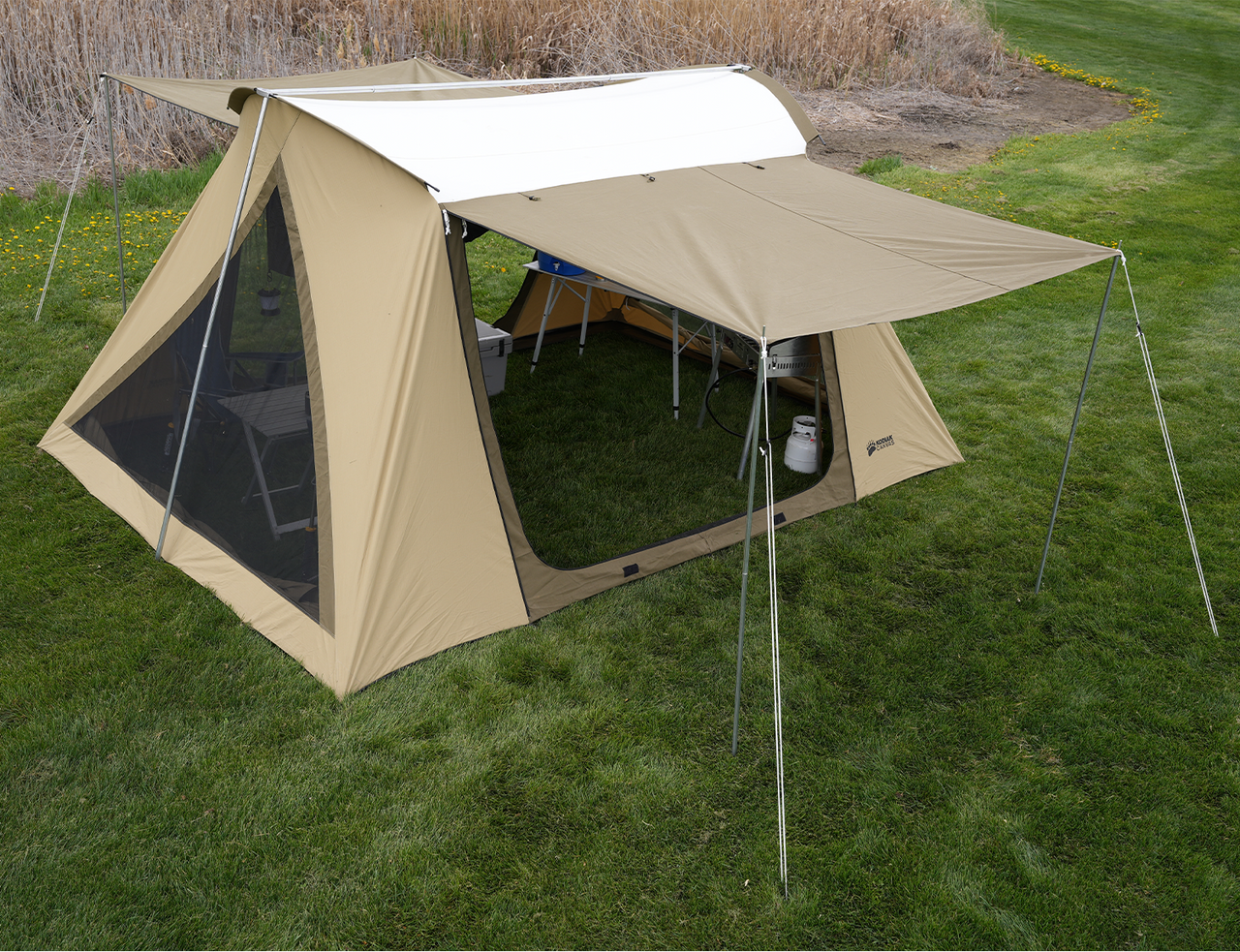 Model 6714. Complete your camp with this rugged all-season Utility Tent. This tent does it all! It’s the perfect retreat from bugs, sun, and weather. Place it over a picnic table to create an ideal dining area, or set it up to add a comfy living space. Use it to store extra gear. Use it as a garage for your mountain bikes. Retreat here at the end of the day for drinks and card games. You can even use this for overflow sleeping. The uses for the Utility Tent are endless!