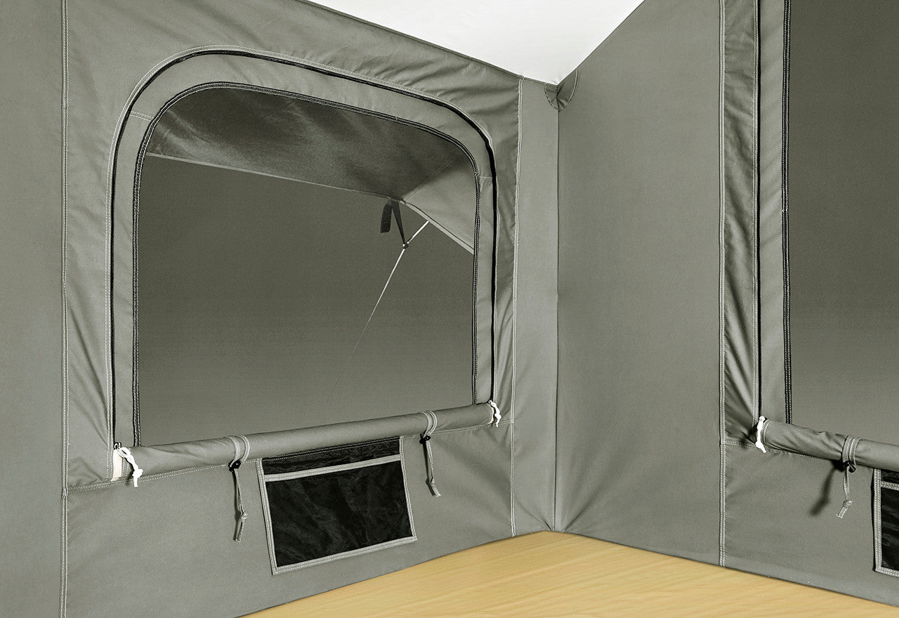 - Ceiling Material: 10 oz Hydra-shield™ canvas
