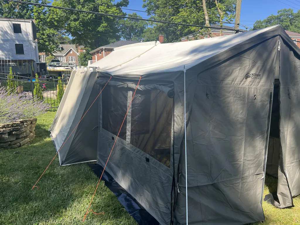 - Size: 12x9 ft. Tent space, plus 8x8.5 ft. deluxe awning