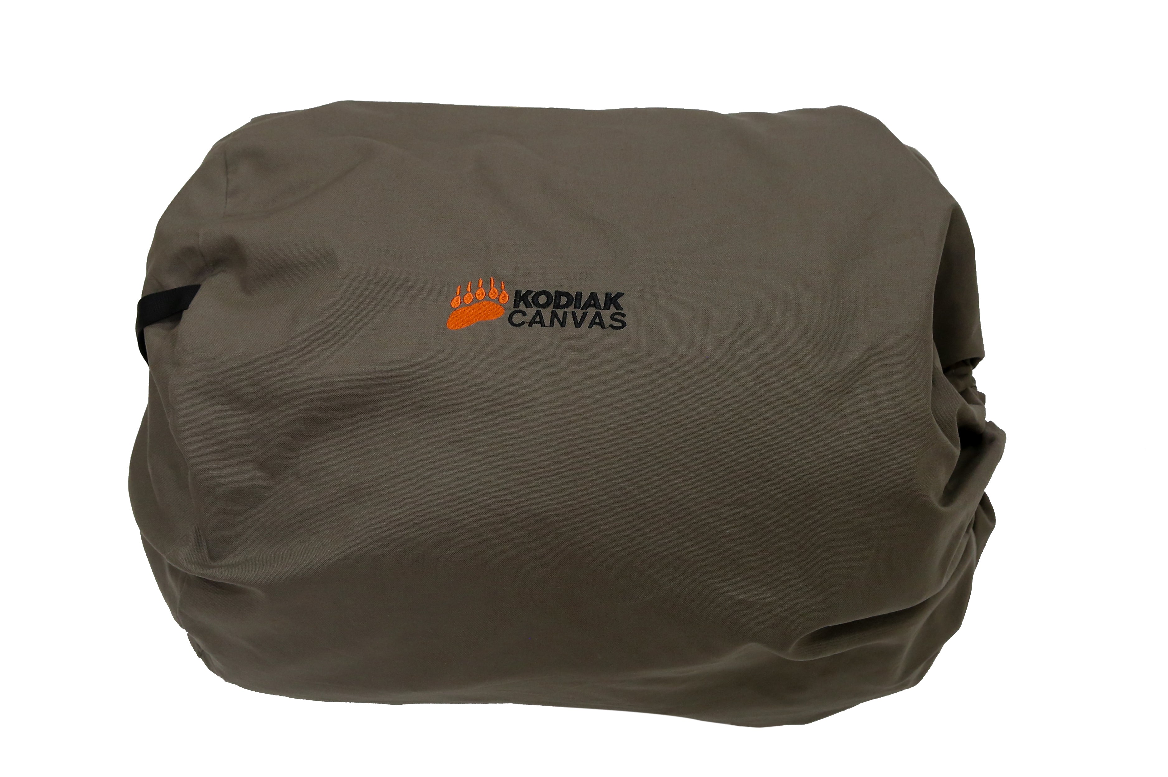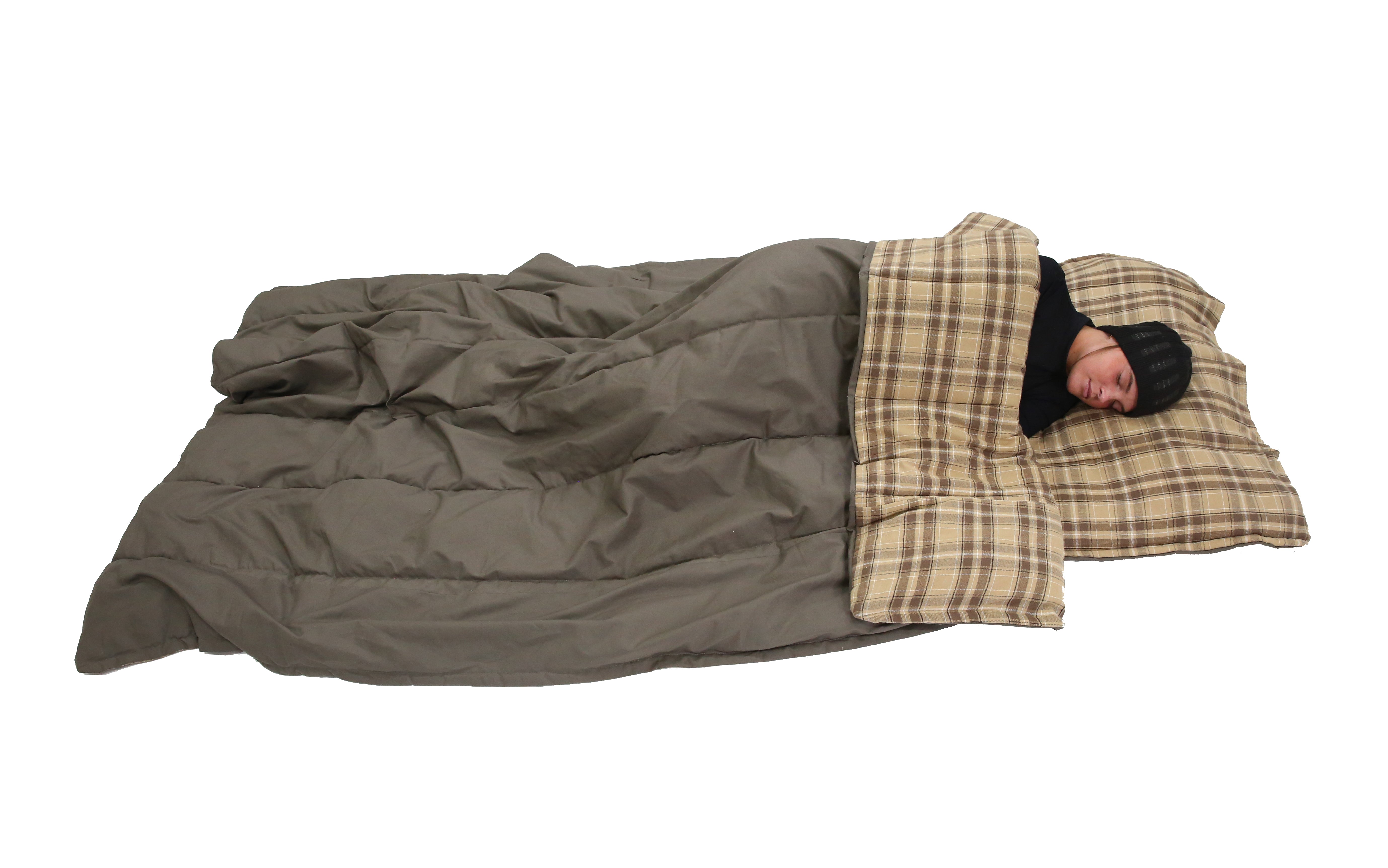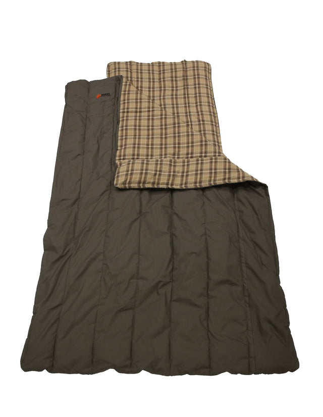 The Camp Quilt Sleep Set is yet another innovation from Kodiak Canvas. The quilts function together as a zipperless alternative to a sleeping bag. The smaller Twin XL-sized quilt goes on the bottom. The larger top quilt has space to wrap up in and get comfy. Use it as bedding for your RV or cabin, as an over blanket to boost the warmth of your sleeping bag, or take it on a picnic. Made with the same materials as our top-of-the-line Z Top sleeping bags. It has a rugged, water-resistant, canvas shell and a posh 100% cotton flannel liner. The efficient Factor-4™ insulation is a hollow fiber polyester that is light, fluffy, and very warm. An easy carry, canvas, stuff bag is included. Bag the restrictive sleeping bag. Ditch the zippers. Sleep cozy.