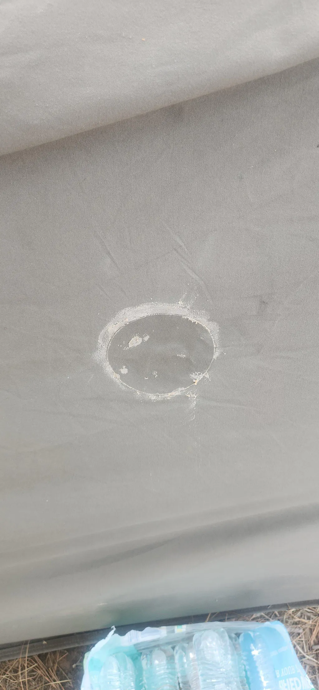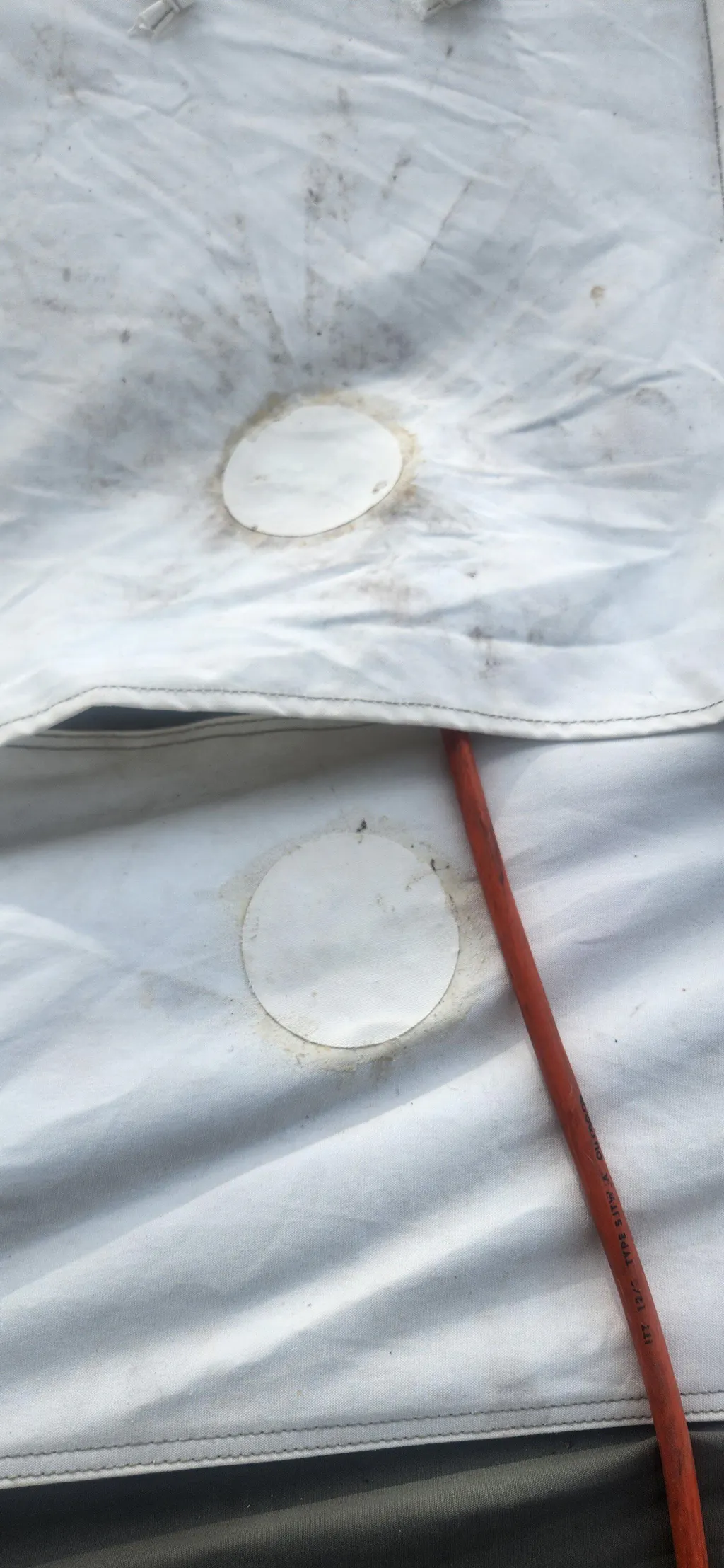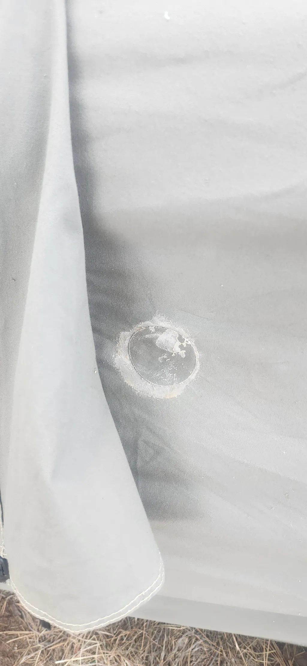 The adhesive glue is a natural latex that can be applied with your fingers. It is quick drying, waterproof, UV resistant, flexible, and permanent. A great solution for holes under 2 inches in diameter. For repairs larger than that, you should take it to a local canvas shop for repair.