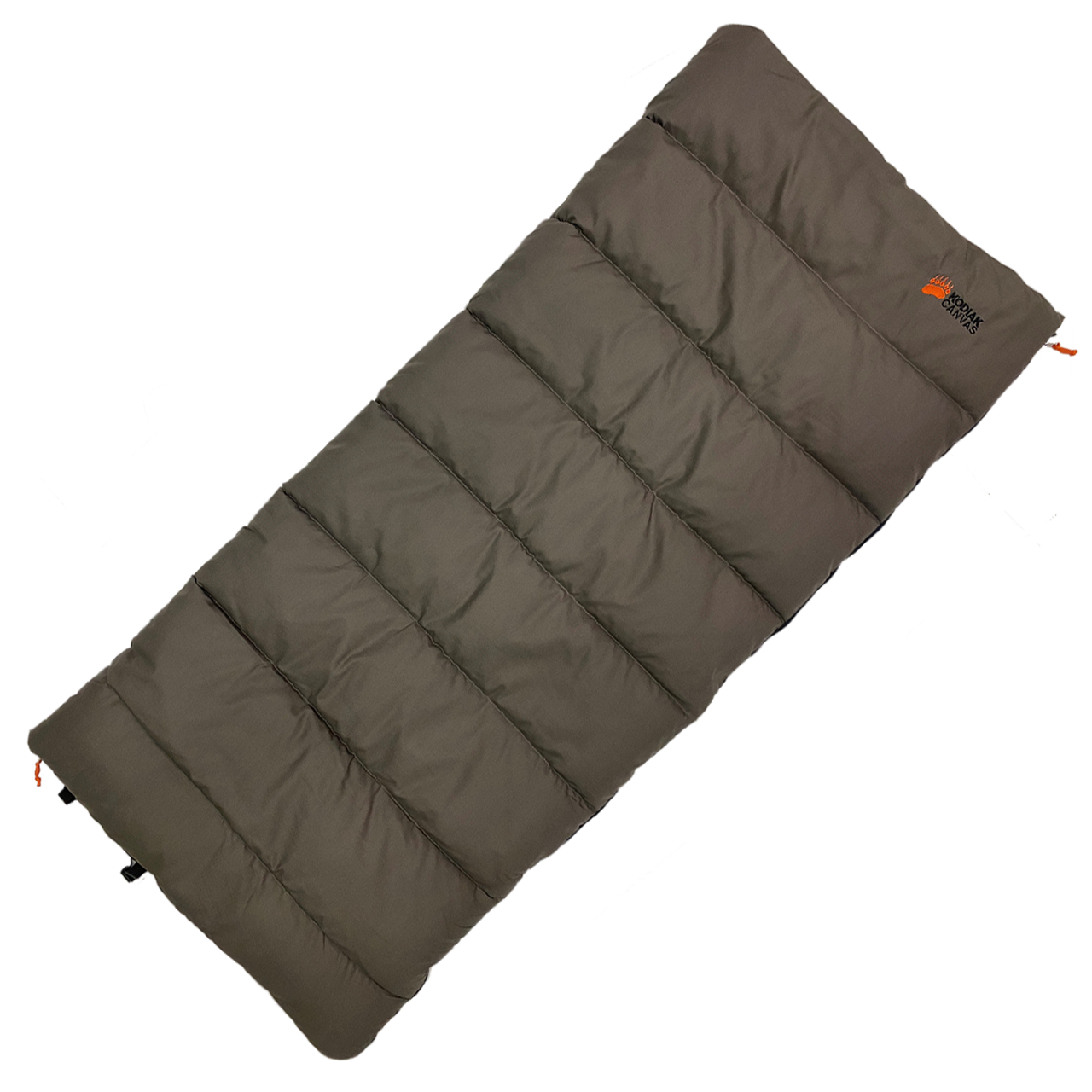 For those who prefer a traditional style sleeping bag, here it is. The Kodiak Canvas +30° (Fahrenheit) Rectangle Sleeping Bag, available in two sizes.
