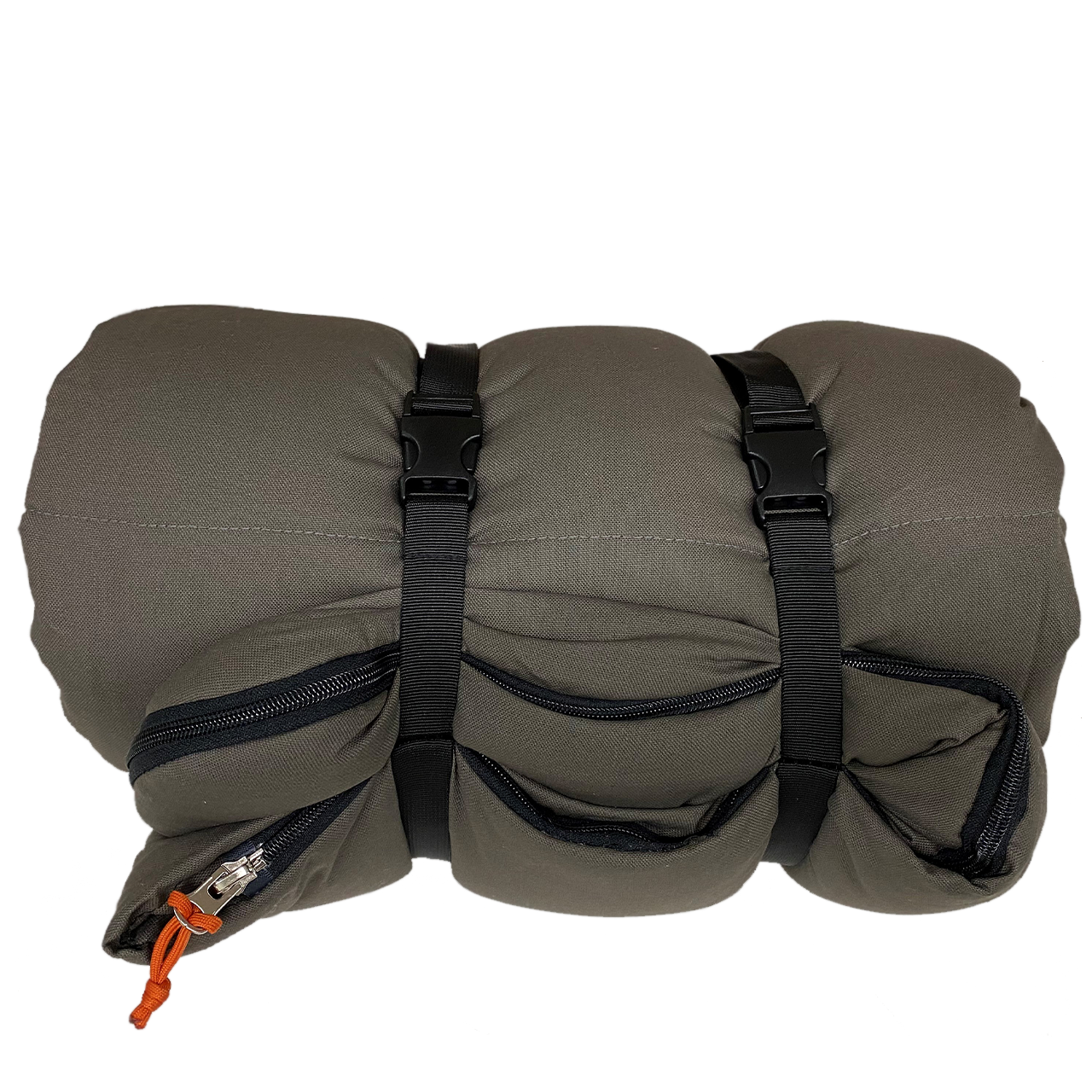 Keeping true to our Kodiak Canvas standards, this bag is constructed with premium materials. This bag features a rugged 100% cotton canvas shell, and a soft 100% cotton flannel liner. The warm Factor 4™, hollow, poly-fiber, insulation is light and fluffy. The locking zipper stays put until you tug on the zipper pull. This keeps the bag from unexpectedly coming unzipped in the night. A zipper at the foot of the bag allows you to vent the bottom when needed. Zip two of these bags together for an oversized bag ideal for two. Roll up the bag and secure it with handy compression straps and snap buckles. A canvas carry bag is included.